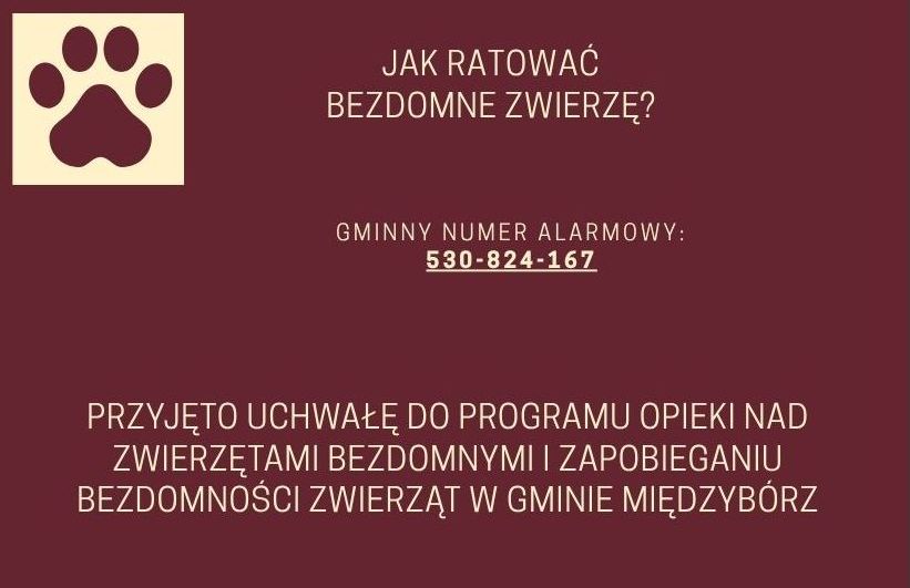 Urząd Miasta i Gminy uruchomił alarmowy telefon, pod którym zgłaszać można przypadki bezdomnych zwierząt, zwierząt domowych żyjących w nienależytych warunkach lub maltretowanych.
